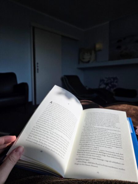 Nach dem ersten Saunagang ging es für mich an die eigene Tee-und Wasserstation im Spa, an der sich die Gäste frei bedienen dürfen. Mit einem leckeren Tee habe ich es mir im Ruheraum mit einem Buch gemütlich gemacht. Hach, warm eingekuschelt nach einem Saunagang mit einem Buch zu entspannen, während die Sonne durchs Fenster scheint – geht es viel besser?