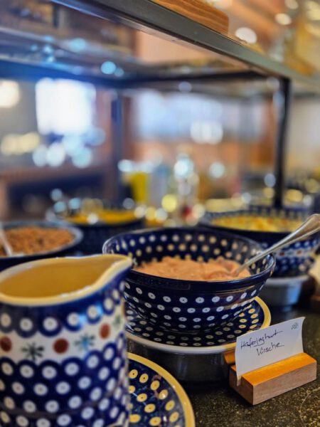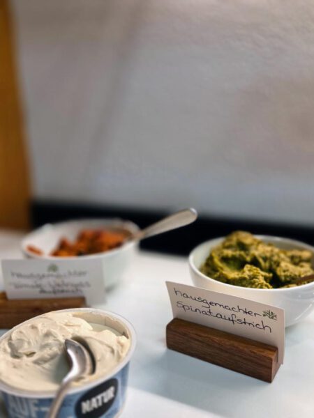 Auch das Frühstück besticht durch eine riesige Auswahl an veganen und regionalen Speisen: von verschiedenen Hafer- und Sojajoghurts bis hinzu hausgemachten Aufstrichen, aber auch einer großen veganen Käseauswahl fehlt es hier wirklich an nichts. Natürlich fehlen auch Eierspeisen sowie eine große Auswahl an Getränken nicht. Schlemmen ist hier ausdrücklich erlaubt!