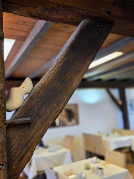Zum Frühstück ging es in die Stube, die liebevoll mit Holzschuhen dekoriert ist, eine Hommage an Johann Egging, der Holzschumacher war. Total charmant und gepaart mit den wunderschönen alten Balken eine perfekte Kulisse für den Frühstücksraum!